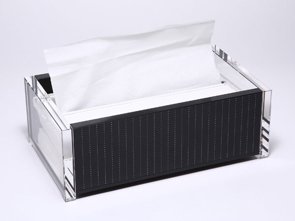 シンプルで機能美あふれるペーパータオルケース。クリアカラーと黒の2色コンビがモダン。ペーパータオルホルダー/ドットライン/ブラック【TJFAアクリルボックス】